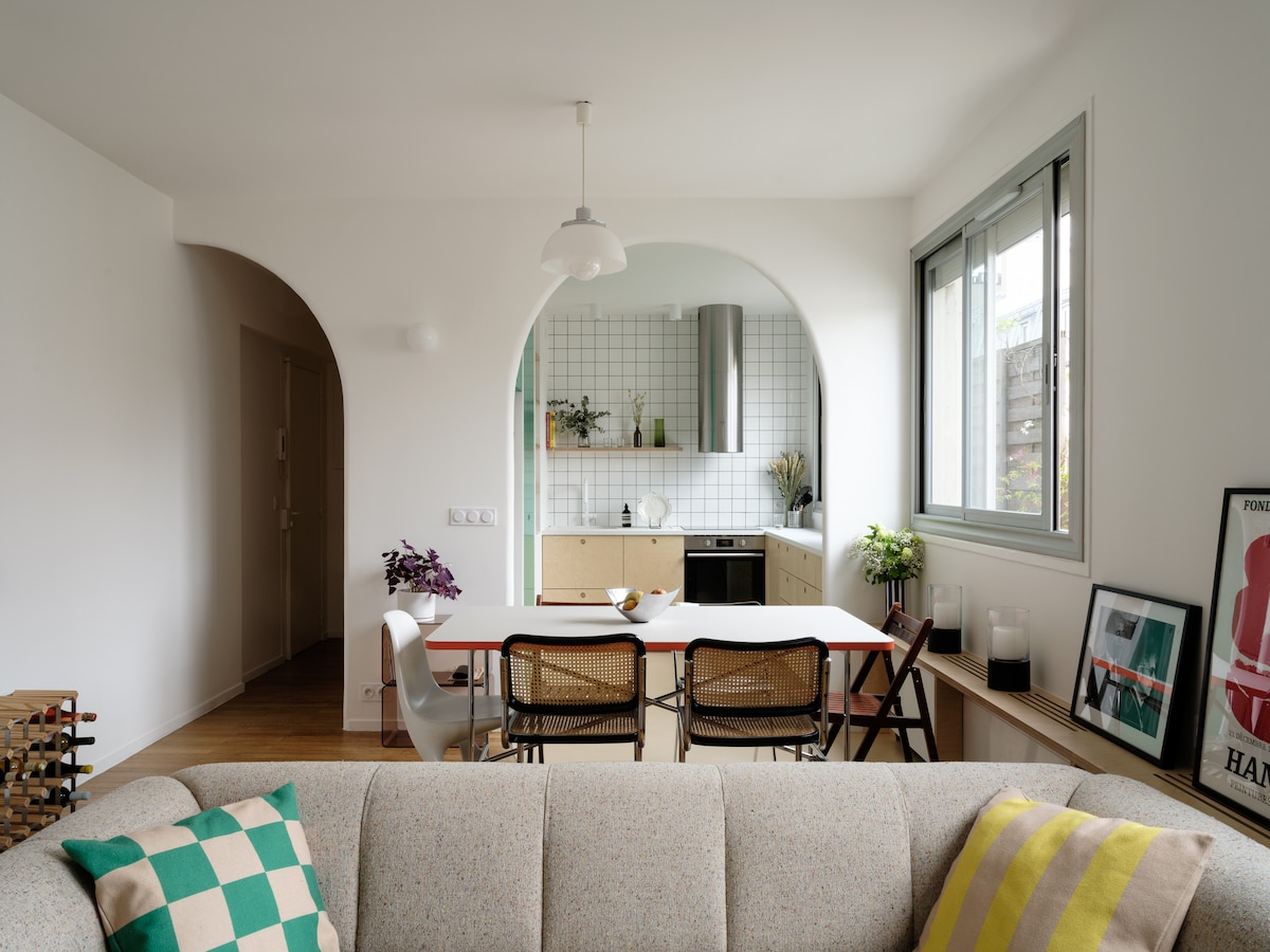 Apartament położony jest w pobliżu Moulin Rouge, w dzielnicy Montmartre, w sercu nietypowego i spokojnego miasta; widok na ogród Jest to przestrzeń o powierzchni 52 m2, która nie wychodzi na ulicę, parter, położona z dala od hałasu ulicy, wysoki standard składający się z pięknej sypialni, kącika relaksacyjnego, przestrzeni do obiadu/kolacji, pracy, otwartej lub zamkniętej kuchni. Jest wyposażony w nowe technologie, doskonałe Wi-Fi, duży telewizor (85 cali), dźwięk Hi-Fi i oświetlenie regulowane zgodnie z Twoimi preferencjami.