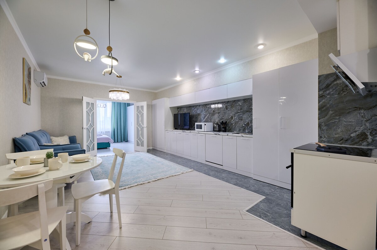 Najlepsza lokalizacja, aby poczuć klimat Ałmaty. Sam środek, gdzie wszystko jest w odległości spaceru! W pobliżu centrum handlowego, kawiarni, kin, parku 28 Panfilov, parku Gorkiego, zoo, Zielonego Bazaru, symfonii, opery itp. Udogodnienia: zmywarka, pralka, ekspres do kawy, klimatyzacja, telewizor, 2 dostawcy internetu Kazaktelecom 500mb i AlmaTV 100mb, żelazko i SMART-LOCK. Ręczniki i akcesoria prysznicowe są dostępne dla wszystkich gości.