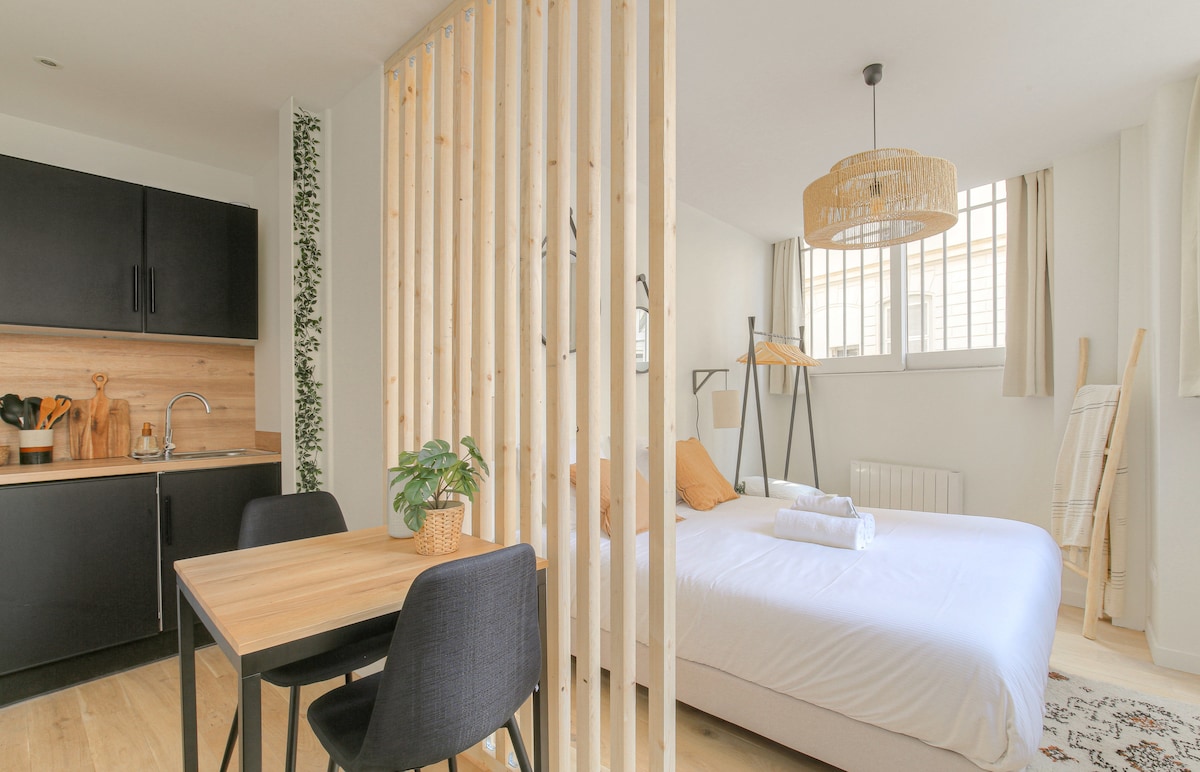 Piękne studio położone w samym sercu dzielnicy Confluence. Jest to idealne miejsce na weekendowe odkrycie lub tydzień w Lyonie (profesjonalne lub zdalne szkolenie zawodowe), łącząc BLISKOŚĆ i WYGODĘ. Mieszkanie jest nowe, jasne, bardzo dobrze wyposażone, posiada duży taras (parasol, sofa, elektryczny grill). Mobilny klimatyzator jest dostępny w przypadku wysokiego ogrzewania. Szybki dostęp do transportu publicznego, restauracji, barów, centrum handlowego Confluence, muzeum Confluence, kina...