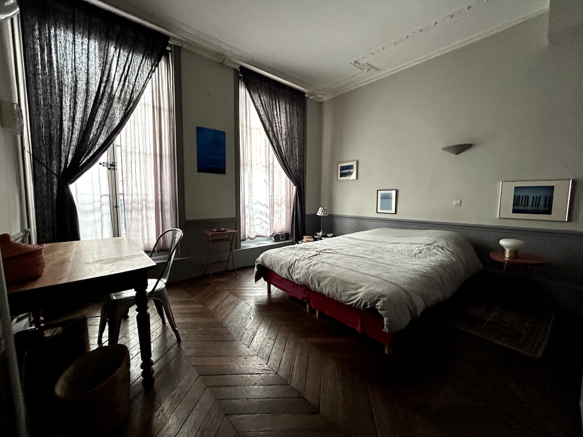 Stunning Parisian apartment of 160 m², located in a building dating from 1830. This former hôtel particulier, with a stone-carved façade, has been renovated into a bourgeois residence featuring high moulded ceilings and spacious rooms. The décor is eclectic, combining sculptures, paintings, and objects collected over time. Ideally located near Canal Saint-Martin and the northern Marais, in one of Paris’s most sought-after neighborhoods, surrounded by trendy restaurants, bars, and boutiques.