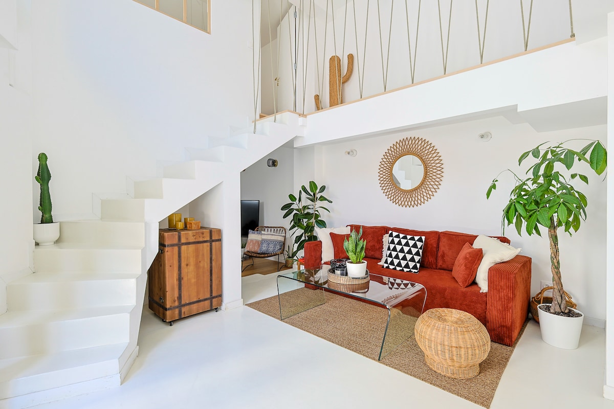 Śródziemnomorski loft dwupoziomowy w stylu boho · Prywatne wejście