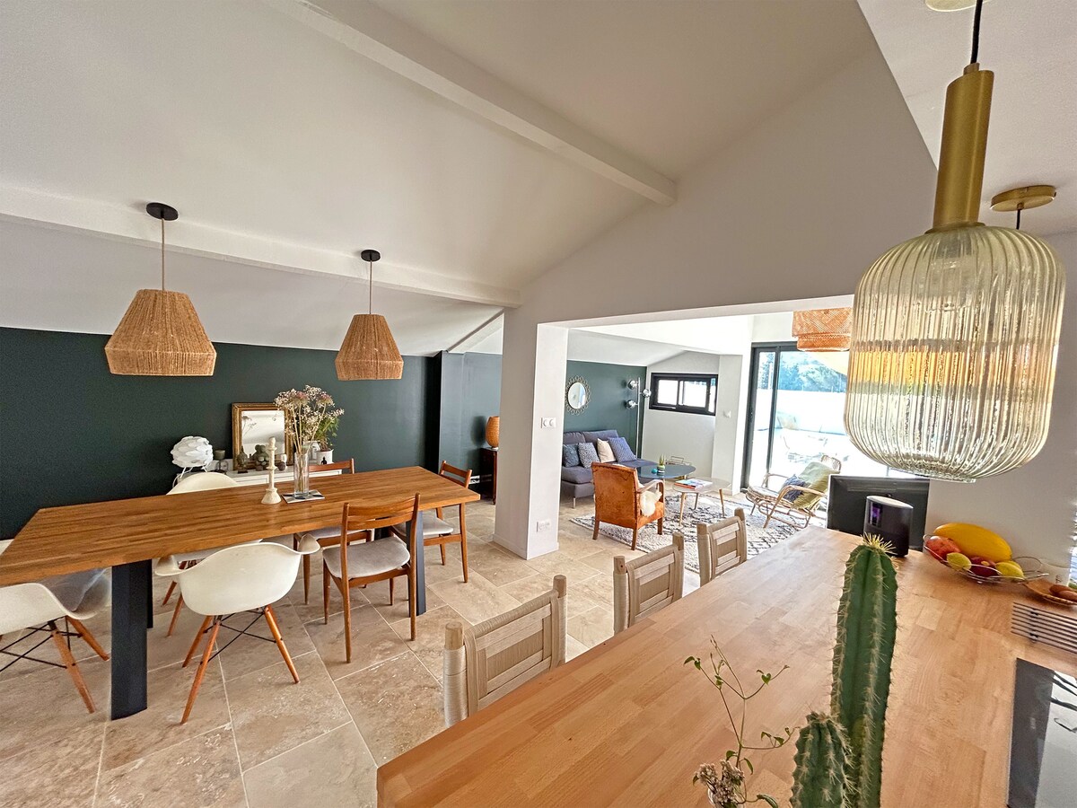 Apartament odnowiony w 2024 roku z widokiem na wzgórza, Zatokę Marsylską i Wyspy Frioul, w pobliżu Parku Narodowego Calanques. Idealna lokalizacja na piesze wędrówki i kontakt z naturą: bezpośredni dostęp do Calanques de Sormiou i Morgiou bez przechodzenia przez drogi! W dużej willi i bardzo cichej dzielnicy mieszkalnej z bezpłatnym i bezpiecznym parkingiem. Idealne na miejski wypad dla par, turystów, nurków i wspinaczy, ale nie na imprezy ;-)