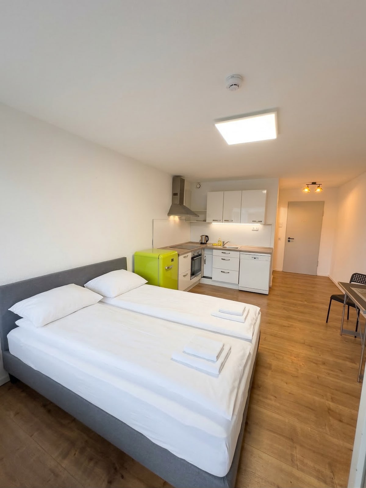 Drodzy goście, mój apartament znajduje się w centrum nad stawem Aachen, w samym centrum miasta. Wszystko jest nowe, spójrz na zdjęcia 😊 na przestronnej kanapie z prawdziwym materacem oferuje powierzchnię 1 m 40 × 2 m. Okna wchodzą na podwórko i można je zasłonić zasłonami. Jest to kawalerka, prawie duży pokój lub pokój hotelowy. —> Zameldowanie nie przed godziną 15:00. Nie ma możliwości późniejszego wymeldowania. Brak przechowalni bagażu przed/po
