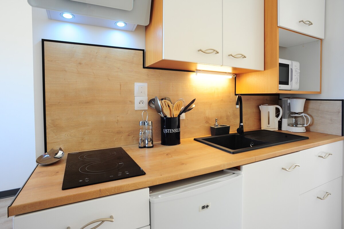 Apartament dwupoziomowy położony w bardzo przyjemnym, spokojnym otoczeniu, niedaleko centrum miasta (5 minut samochodem). Ten 26-metrowy domek z dwiema gwiazdkami i wszelkimi wygodami znajduje się 400 metrów od plaży, w pobliżu opactwa Beauport. Idealne zakwaterowanie dla młodej pary. Pokój na antresoli jest dostępny dzięki schodom młynarskim (dość stromym) i oferuje niewielki widok na morze po przebudzeniu. Bezpłatny prywatny parking na miejscu.