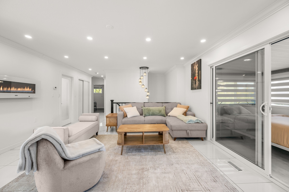 Zrelaksuj się w naszym odnowionym domu Abbotsford z 3 sypialniami! Ciesz się dużym prywatnym podwórkiem, prywatną wanną z hydromasażem, grillem na świeżym powietrzu i zewnętrznym projektorem do wieczorów filmowych pod gwiazdami. Stylowe wnętrze posiada otwartą przestrzeń mieszkalną, nowoczesną kuchnię i w pełni odnowioną łazienkę. Idealne dla rodzin lub małych grup, w pobliżu parków, sklepów spożywczych, sklepów, restauracji i autostrad. Zarezerwuj pobyt i poczuj idealne połączenie wygody, rozrywki i relaksu!