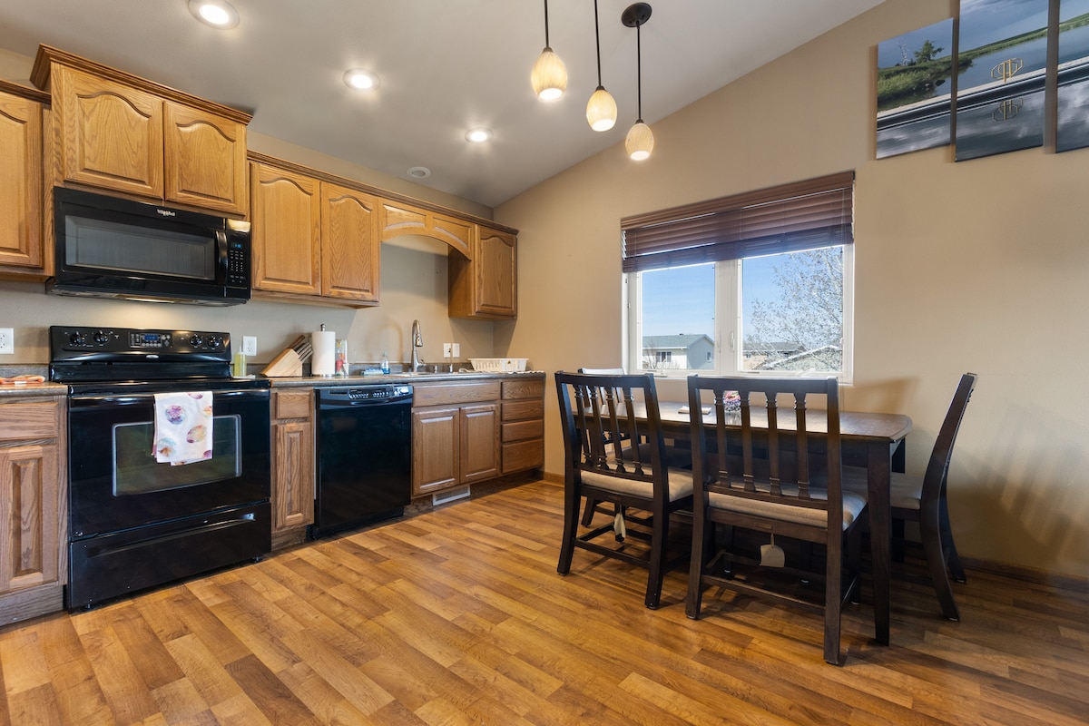 Zrelaksuj się z całą rodziną lub znajomymi myśliwymi w tym spokojnym miejscu na pobyt tuż poza miastem. 5 sypialni, 2,5 łazienki. Na piętrze znajdują się 3 sypialnie. Jedno łóżko typu king, jedno łóżko typu full i dwa łóżka pojedyncze. Na parterze znajduje się łóżko typu queen, 2 bardzo długie łóżka pojedyncze i rozkładana kanapa. Każdy będzie miał gdzie spać! Znajduje się tu przestronny taras z pięknym widokiem na okolicę. Podwórko jest duże i zawiera ogrodzoną na zewnątrz budę dla psa. Zwierzęta są akceptowane w garażu i na zewnątrz.