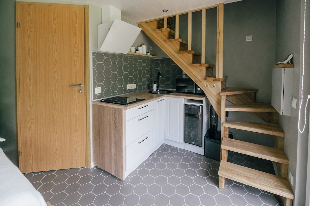 To centralnie położone miejsce oferuje wszystko, czego potrzebujesz. Prywatny parking na podwórku, wygodne łóżko i w pełni wyposażona kuchnia. Apartament znajduje się w starym drewnianym domu, w którym tajemnicza klatka schodowa prowadzi do jasnego i stylowego apartamentu typu studio (na drugim piętrze). Wszystko, czego potrzebujesz, jest na miejscu. Kawiarnie za rogiem i wzgórza zamku Viljandi 10 minut spacerem.