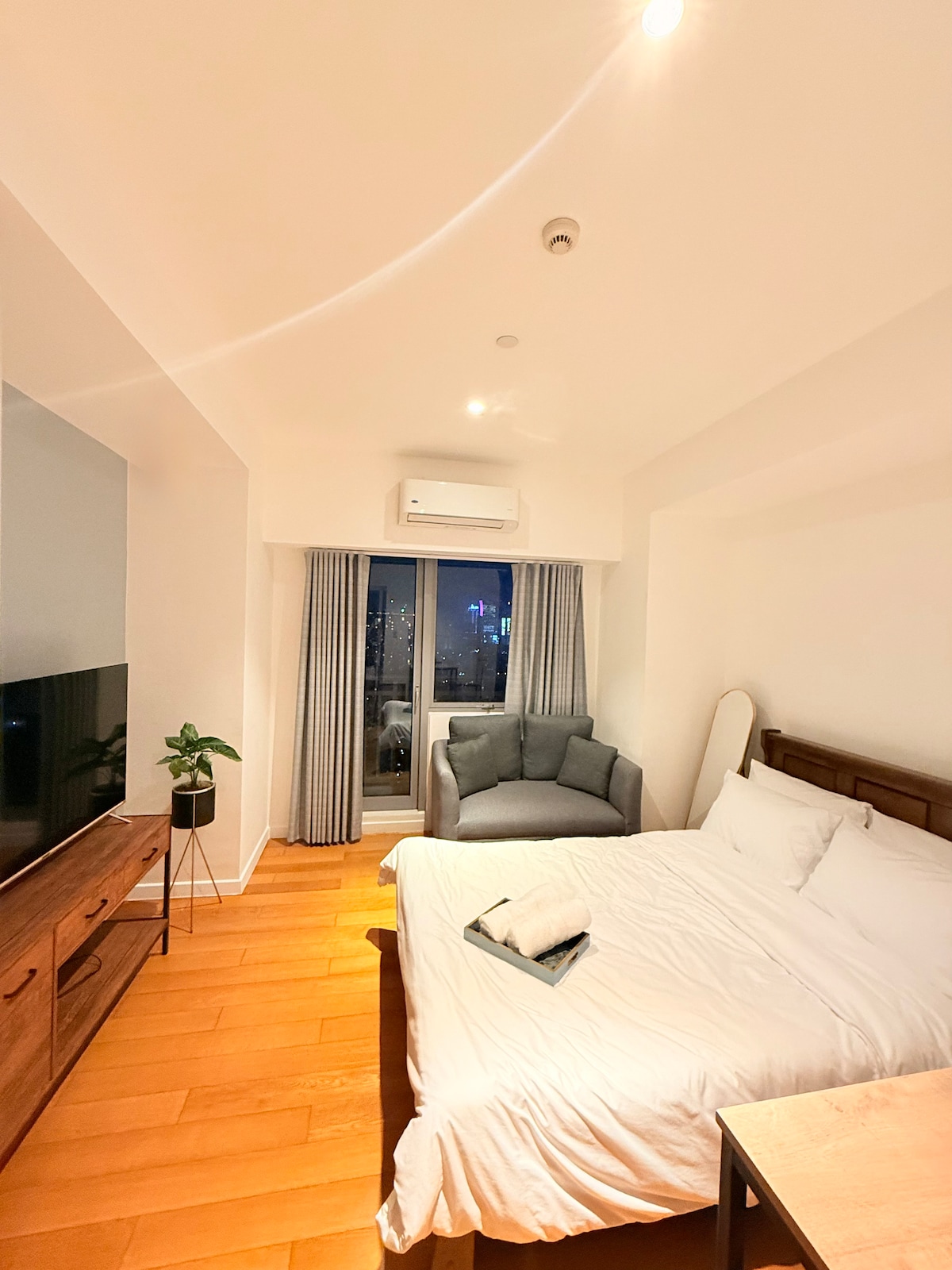 Studio na najwyższym piętrze z balkonem i widokiem na miasto oraz rzekę. Ciepłe odcienie drewna, czyste, minimalistyczne wnętrza – relaksujący wypoczynek. Acqua Private Residences to kompleks mieszkalny w stylu kurortu, położony w wieży Iguazu, w odległości spaceru od centrum handlowego Power Plant Mall i Rockwell Makati ~300 Mb/s Wi-Fi • Smart TV + BEZPŁATNY Netflix • Podwójne łóżko + sofa • Kuchnia • Gorący prysznic i przybory toaletowe • BEZPŁATNY basen (zamknięty w poniedziałki) • Płatny parking • Prezent powitalny 🎁 Łatwy dostęp do BGC, Poblacion, Makati CBD, Ortigas, Pasig. Lotnisko NAIA ~30 min