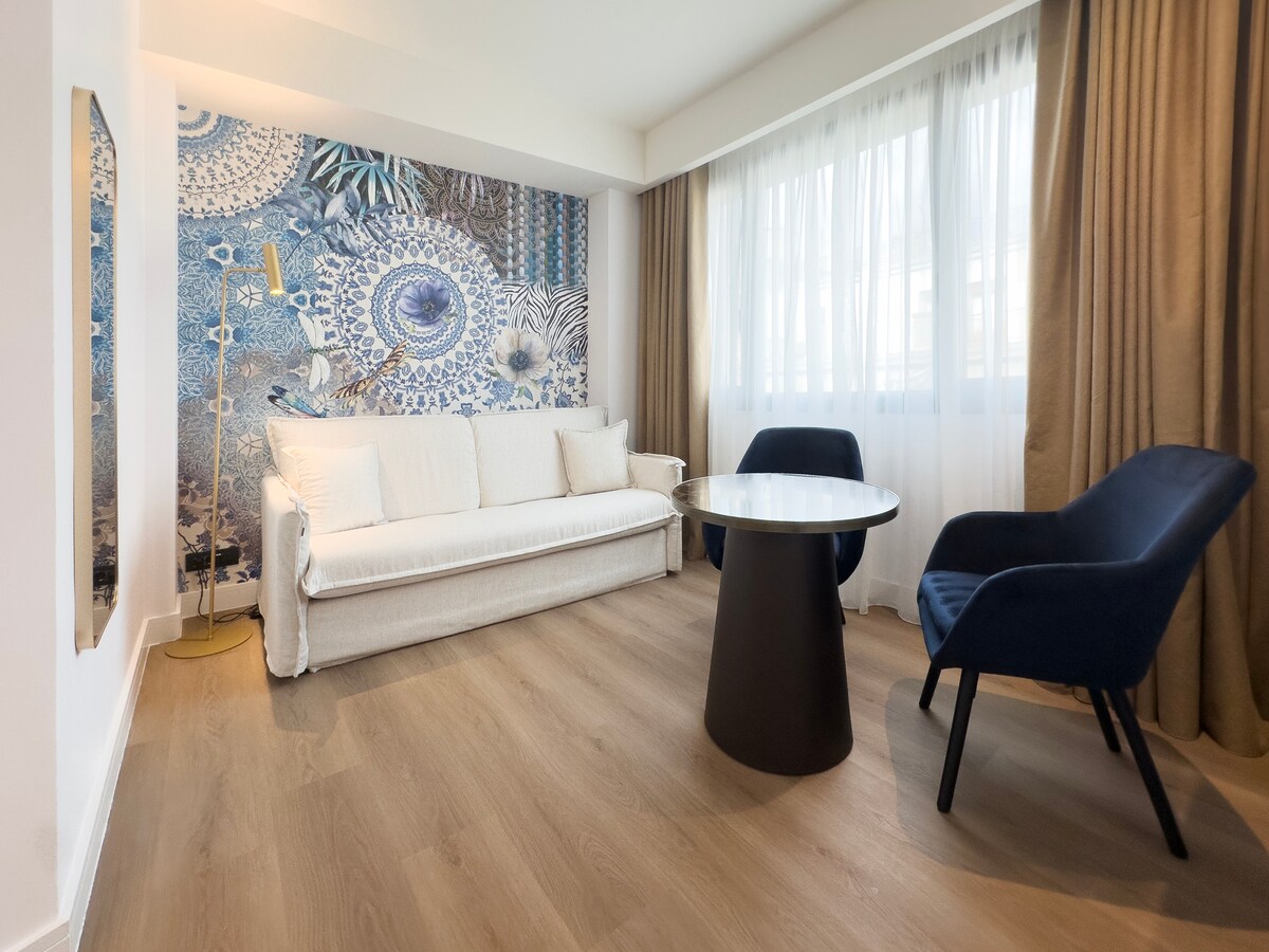 This 36 sqm room combines style and comfort. Rest on a premium mattress in the cozy bedroom, with a sofa bed for extra sleeping space. Natural light fills the room, with blackout curtains for privacy. A kitchenette allows easy meal prep, and the modern bathroom has a shower. Stay connected with high-speed Wi-Fi, and use the high table for dining or work. A laptop safe is also included for secure storage of your valuables.