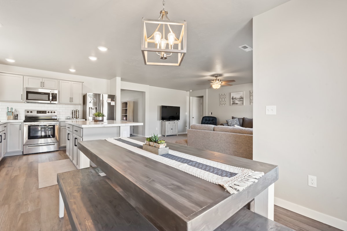 Wavetrain Retreat to przestronny dom o powierzchni 244 m², idealny dla rodzin i grup. Dzięki 5 sypialniom i 2,5 łazience każdy znajdzie tu miejsce na relaks. Do dyspozycji gości jest pokój gier z grami planszowymi i puzzle, loft z grami wideo, 55-calowym telewizorem i systemem z 1000 gier oraz pokój zabaw dla dzieci pod schodami. Położone w centrum w pobliżu sklepów, restauracji i atrakcji: • The Village at Meridian – 3,5 mili • Port lotniczy Boise – 6 mil • Centrum Boise – 7 mil • Boise Towne Square Mall/Top Golf – 2,5 mili