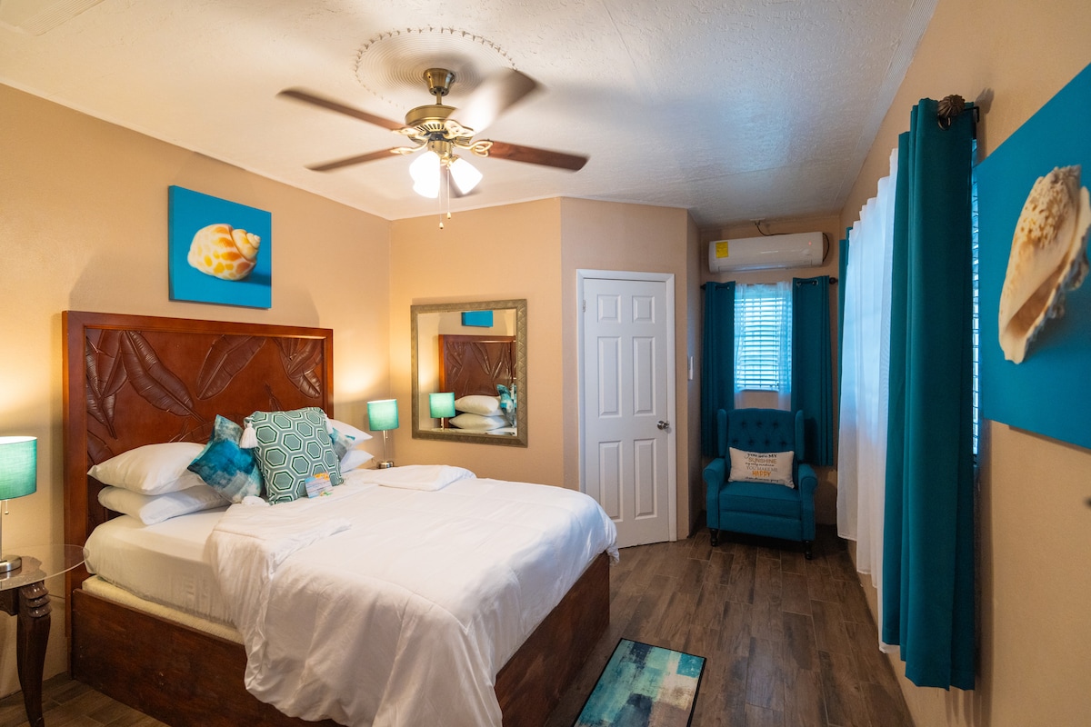 Embrace resplendent turquoise blue waters..beam with unbothered relaxation..encounter serene oceanic sounds..behold captivating sunsets & picturesque oceanic views while napping between fine linen sheets on spacious plush King bed..walk the soft untouched white sandy cove..airport five mins ✈️ drive..nearby: lots of shopping: fine dining, supermarkets, drive private car rental, taxi or 🚎 …experience unimaginable Peace…once you stay @ Peace & Quiet on The Waters Peace remains in you..come & see