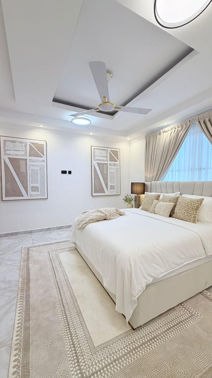 Witaj w prywatnym ośrodku wypoczynkowym w Akrze. Nubian Villa oferuje prywatny basen bez krawędzi, 36-dyszową balię z własnym barem i wiszącymi fotelami, w pełni wyposażoną siłownię oraz profesjonalne usługi szefa kuchni – a to wszystko w bezpiecznej, luksusowej rezydencji z 4 sypialniami. Ta willa, zaprojektowana z myślą o rodzinach, menedżerach i wymagających podróżnych, łączy w sobie prywatność, komfort i bezproblemową obsługę – w tym odbiór z lotniska i rezerwowy cichy generator zapewniający nieprzerwane zasilanie.