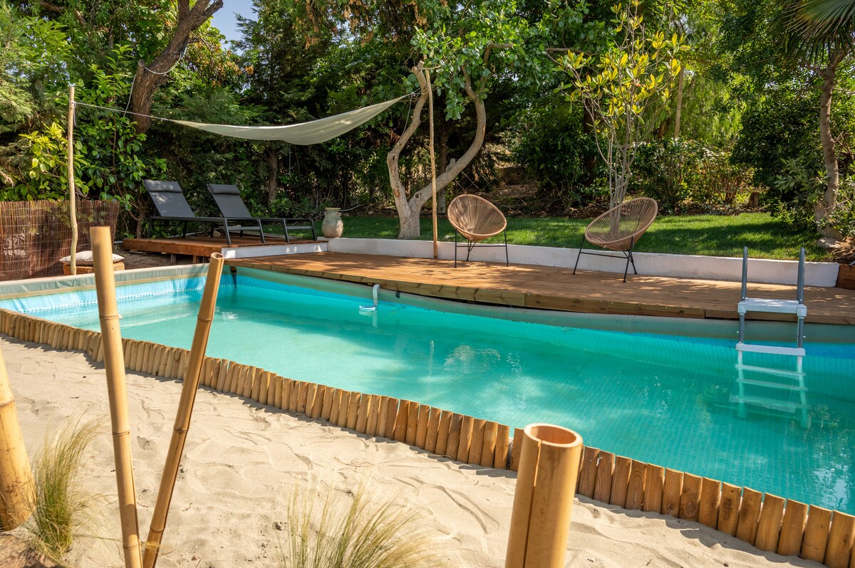 Glamping Dome tent with private swimming pool and large exclusive garden area. Only 40 meters from the sea and Location only 8 min from airport 30 min from Athens by car. NOT suitable for parties, please don't send inquiries