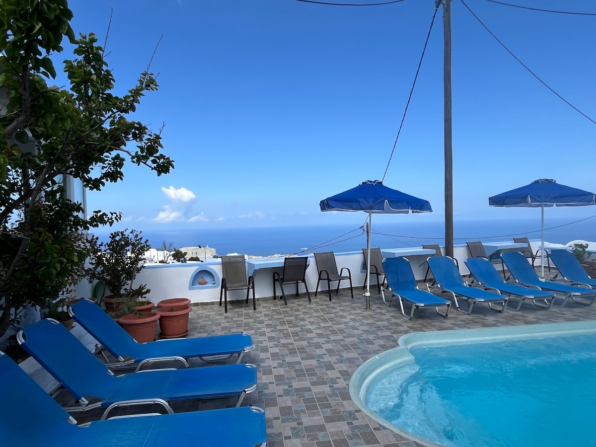 W naszym pokoju dwuosobowym typu Superior z balkonem i niesamowitym widokiem na morze, który znajduje się w Stella Nomikou Apartments, możesz połączyć wakacje na Santorini z rodzinnym ciepłem i gościnnością. Znajdujemy się w Firostefani Village 10 minut pieszo od centrum wyspy Fira i przystanku autobusowego do wszystkich miejsc docelowych oraz kilka metrów od widoku na kalderę. Wokół pokoju znajdują się restauracje , kawiarnie , mini targ, pralnia, 2 bezpłatne parkingi publiczne oraz wypożyczalnie samochodów i motocykli.