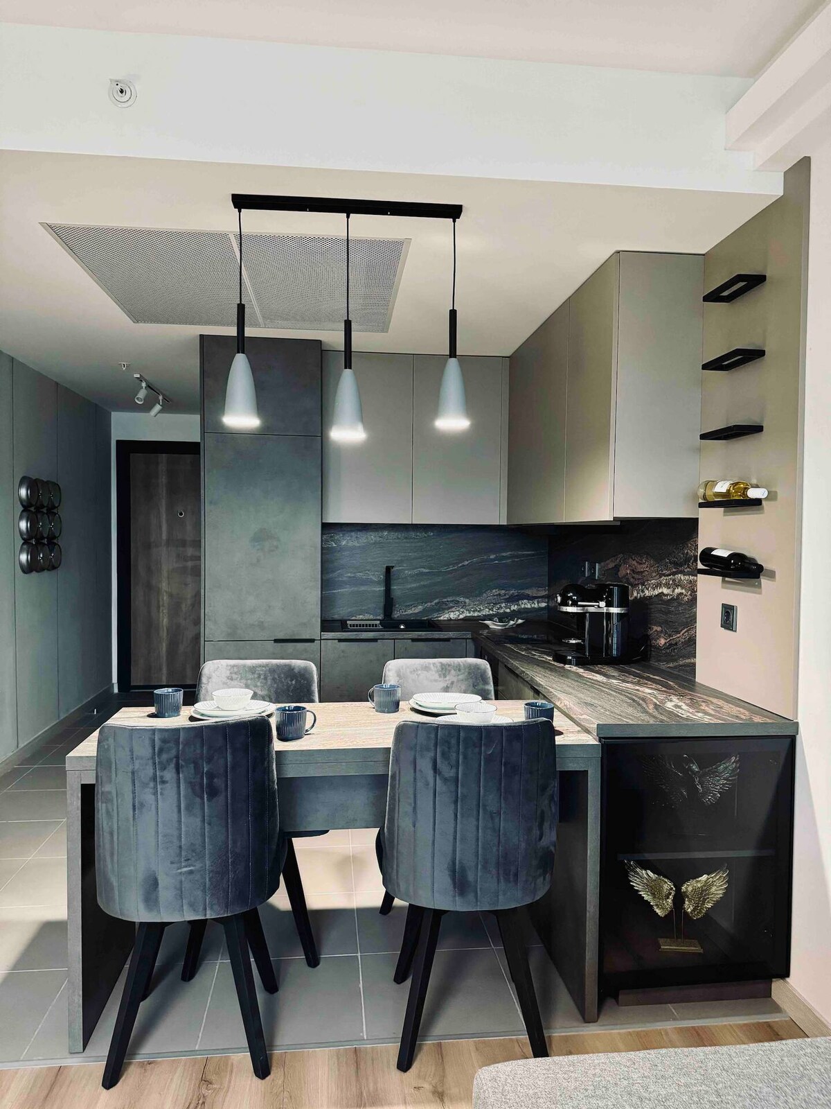 Odkryj luksusowe mieszkanie na 33. piętrze, gdzie elegancja spotyka się z wygodą. Nasz apartament, wysoko nad miastem, oferuje wyrafinowanie i komfort. Ta ekskluzywna rezydencja oferuje spa, basen i centrum fitness na terenie kompleksu, dzięki czemu masz wszystko, czego potrzebujesz, aby pozostać aktywnym i rozkoszować się pełnym relaksem. Dzięki całodobowej ochronie na miejscu Twój spokój ducha jest naszym priorytetem. Zaledwie 3 kilometry od serca Skopje – możesz cieszyć się idealnym połączeniem miejskiego życia i spokojnego wypoczynku.