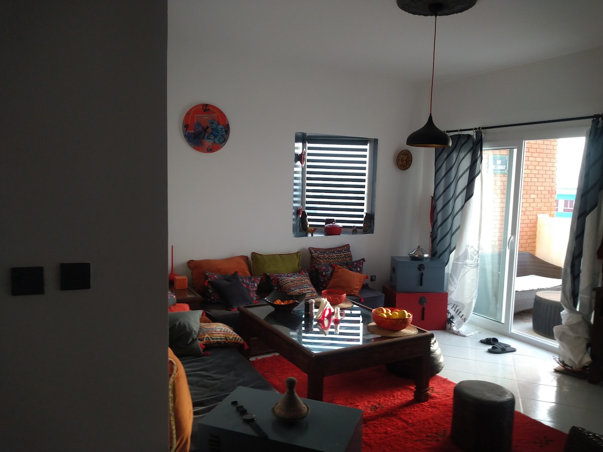 Ciesz się wyjątkowym pobytem w naszym nowoczesnym, dwupokojowym apartamencie, położonym w prywatnym budynku gwarantującym spokój i bezpieczeństwo w Mirleft, kilka kroków od plaż, centrum miasta, na styku miejsc surfingowych regionu . Jasny apartament składa się z dwóch sypialni z podwójnymi łóżkami, przestronnego salonu, kuchni i nowoczesnej łazienki. Duży wspólny taras oferuje wspaniały widok na okoliczne góry i ocean – idealny na relaks pod koniec dnia.