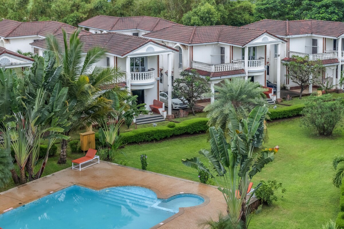 Przytulny apartament 2BHK z dużym basenem i ogrodem w pobliżu plaży Morjim