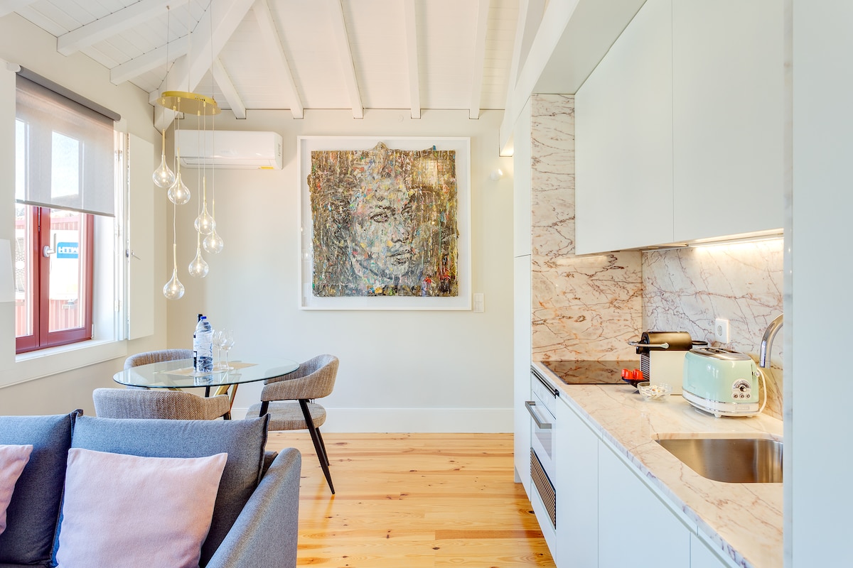 Pięknie położone w budynku z 1785 roku z widokiem na tętniące życiem Porto, wpisane na listę UNESCO, to praktycznie złote wnętrze celebruje komfort i luksus – od miękkiej pianki, niebiańsko amortyzowanego, rzemieślniczego materaca i pozłacanych sztućców Lizz. Połącz trochę lekkomyślnej frywolności z nowoczesnym werwem. Znajdziesz tu również wystawne meble, kuchnię z białymi marmurowymi blatami, wypolerowane drewniane podłogi i wrażenie wywołujące dzieło sztuki z masy perłowej, które jest wyłożone delikatnymi pasmami tkaniny.