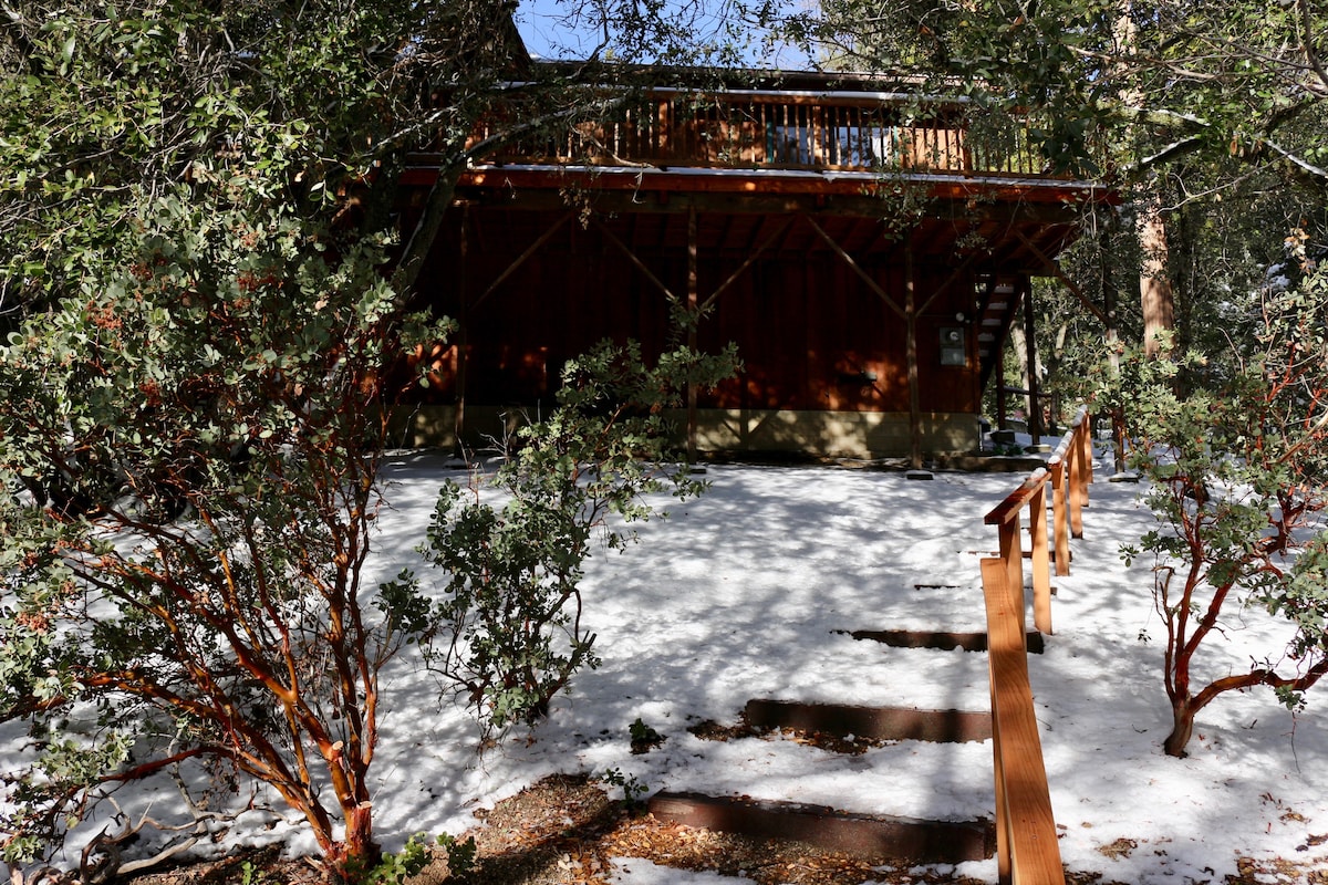 Our treetop cabin is the perfect getaway in the San Jacinto mountains. Located in a quiet neighborhood of Pine Cove, it is less than a 10 minute drive to Idyllwild. Have your morning coffee on the front deck at eye level with the tree tops or have lunch on our picnic table in the open forest under the large live oaks and pines. We pride ourselves in being very responsive hosts and always keep the place nice.