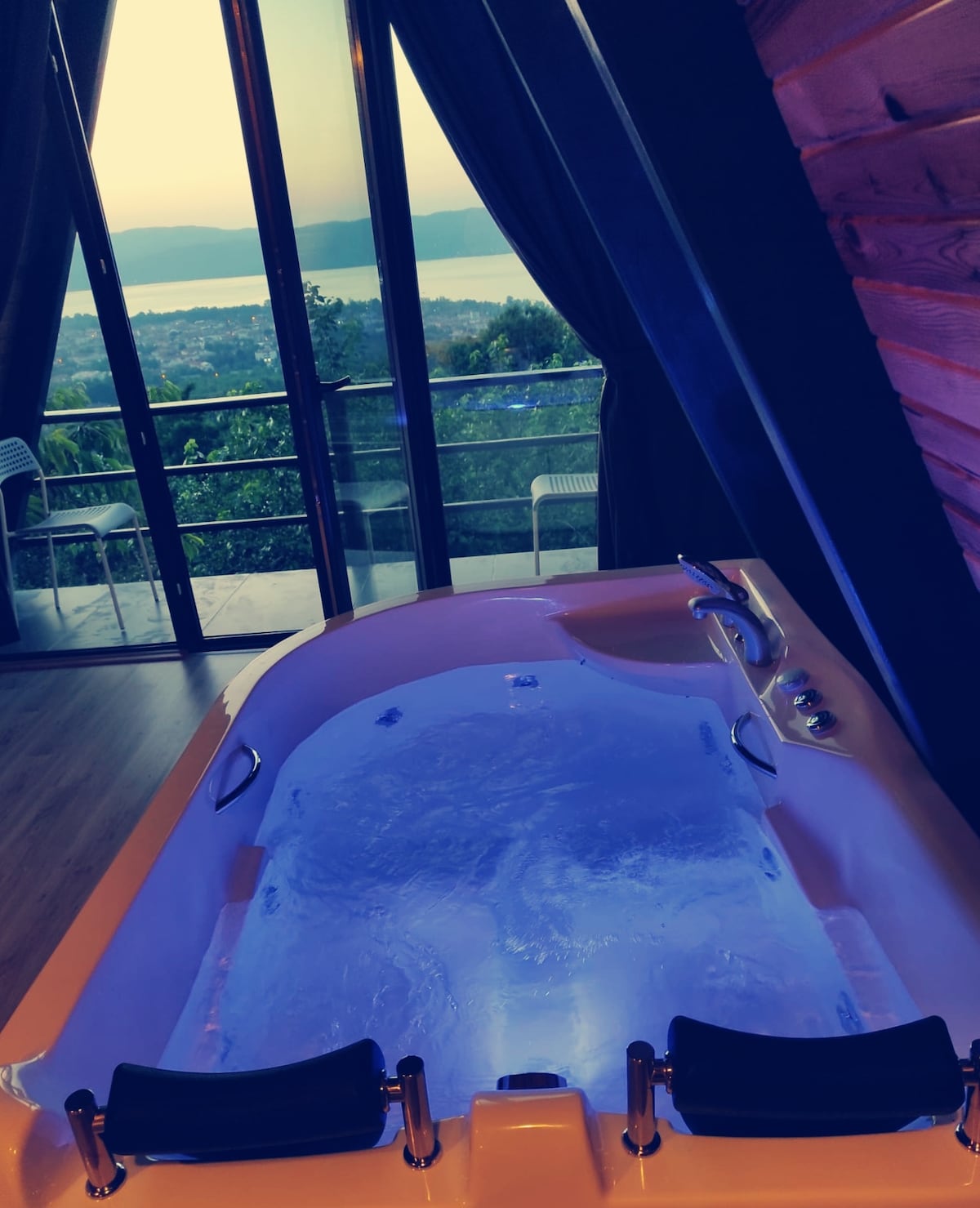 Bu huzurlu konaklama yerinde doğa ile baş başa kalıp, göl ve orman manzarası eşliğinde dinlenebilirsiniz. Size özel jakuzinin keyfini çıkarabilirisiniz.