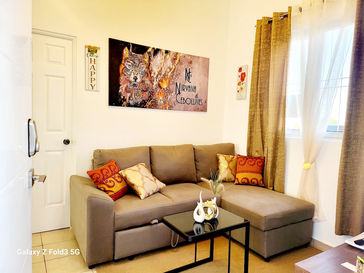 Zrelaksuj się z całą rodziną w tym miejscu, gdzie panuje spokój. Witamy w Sweet Home! Przytulna przestrzeń; znajduje się w rejonie turystycznym w pobliżu trasy de las Flores (Apaneca, Ataco), gorących źródeł, wodospadów; idealne dla rodzin i przyjaciół, którzy chcą przeżyć przygodę. Sweet Home znajduje się w Haciendas del Mediterráneo; prywatna dzielnica mieszkaniowa dla większego bezpieczeństwa, posiada baseny, parki z boiskami do piłki nożnej, koszykówki i supermarket w odległości 1 minuty od dzielnicy.