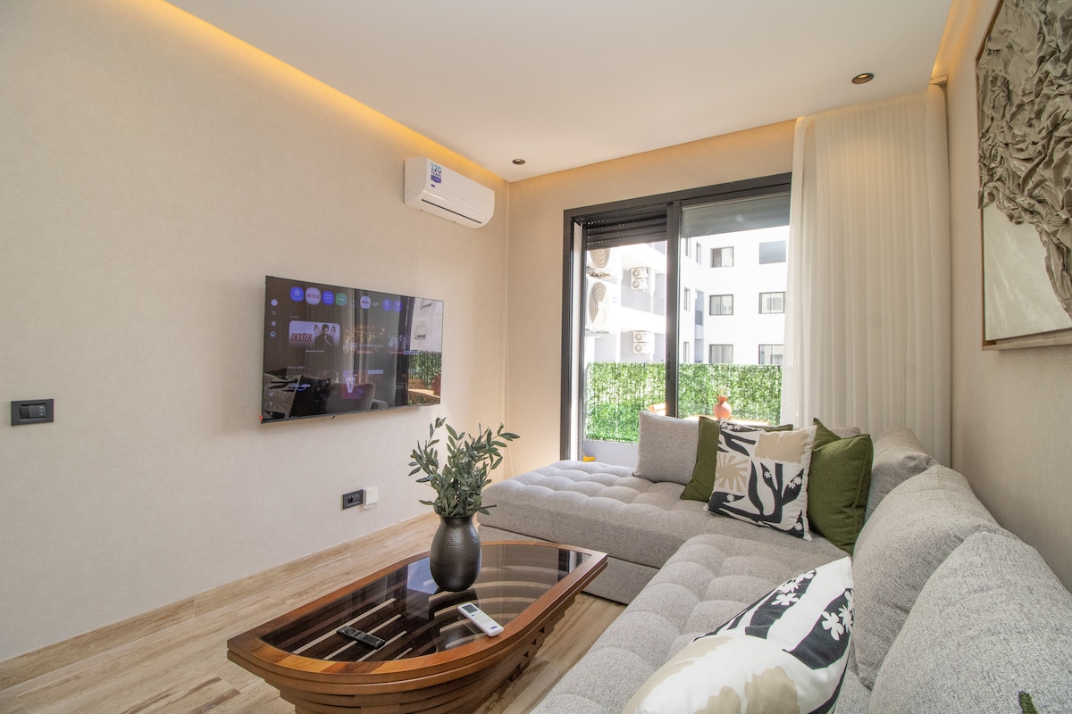 Bienvenue dans cet appartement d’une chambre magnifiquement meublé, lumineux et spacieux situé à Zenata Eco-City, Casablanca à seulement 3 minutes à pieds de la plage - Plage à proximité - Piscine - Place de stationnement gratuit - Adaptée aux familles - Climatisation - Wi-Fi (Haut débit) - Adaptée au travail à distance - Télévision Connectée - Cuisine bien équipée - Machine à café - Bâtiment sécurisée et bien entretenue - Ascenseur