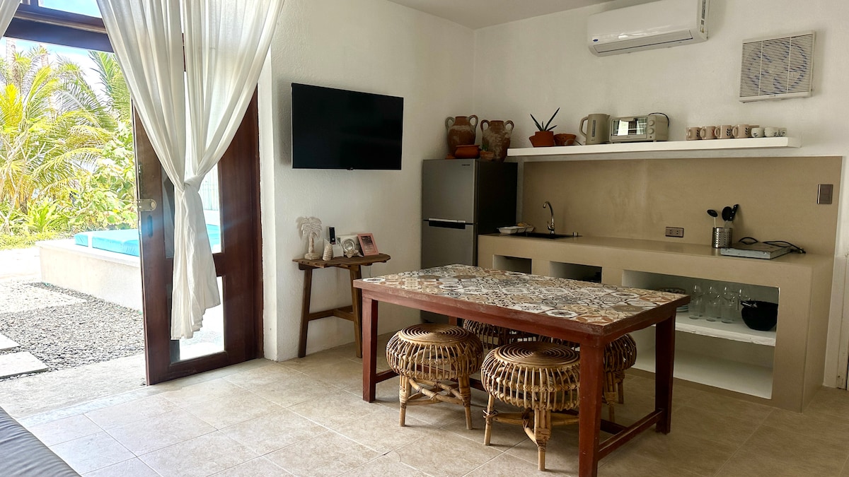 Ten przestronny dom zasilany energią słoneczną znajduje się zaledwie 4 minuty spacerem od plaży przy Stacji 3. Idealne dla rodzin, grup lub firm, może pomieścić do 8 osób (lub do 10, jeśli nie masz nic przeciwko materacowi dmuchanemu). Do dyspozycji gości jest duża kuchnia, przestronny salon, elegancka jadalnia, 2 sypialnie i pokój dzienny oraz 1,5 łazienki. Wypełnione światłem tropikalne wnętrza, meble z drewna i rattanu, blisko wszystkiego. Ciesz się komfortowym, stylowym wypoczynkiem w tym uroczym, przyjaznym rodzinom miejscu!