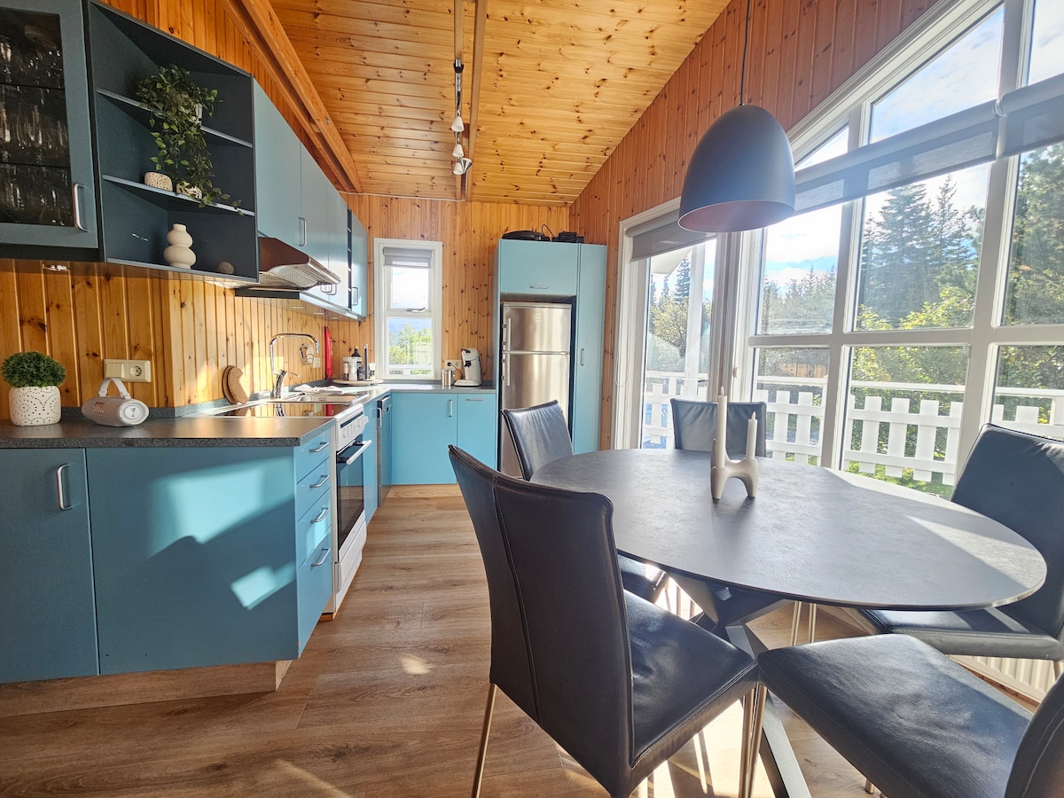 Ten nowoczesny i prywatny luksusowy domek o powierzchni 106 m2 znajduje się tuż nad Akureyri i oferuje wspaniałe widoki na miasto i otaczającą przyrodę. W domu znajduje się w pełni wyposażona kuchnia, telewizor z płaskim ekranem i Wi-Fi, system rozrywki/gry planszowe oraz przytulna wanna z hydromasażem, w której można się zrelaksować po długim dniu.