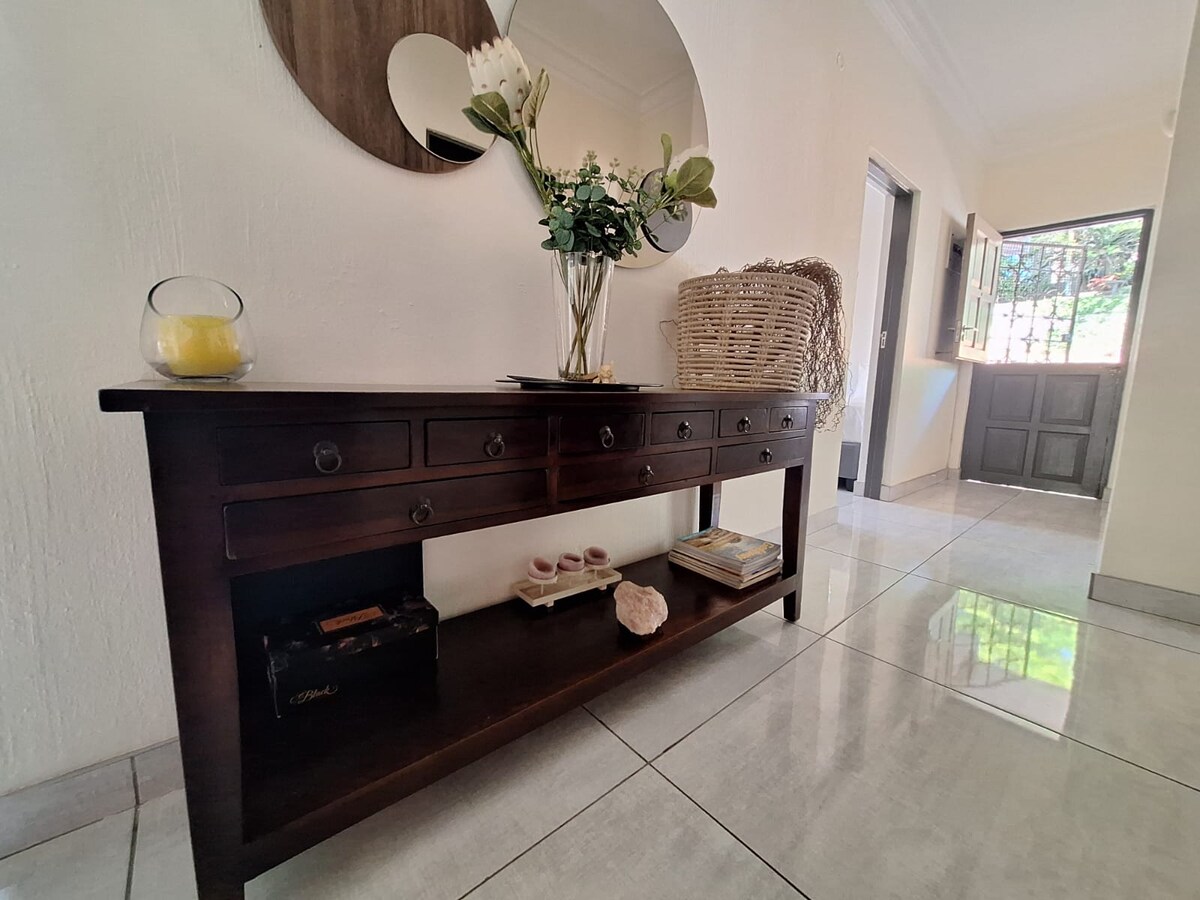 Witamy w The Palms @ Waikiki, Ballito 🌴 Pięknie odnowiony dom z 3 sypialniami i 2 łazienkami w bezpiecznym, spokojnym kompleksie. Ciesz się relaksującą atmosferą wakacji przez cały rok, zaledwie kilka kroków od plaż, sklepów i restauracji Willard i Thompson. Idealne dla rodzin, par lub na pobyt nad morzem. Dom oferuje wygodne łóżka, bezpłatne Wi-Fi, wyposażoną kuchnię i przestronne zadaszone patio idealne na poranną kawę lub wieczorne drinki. Przyjedź i poznaj jedno z najlepszych miejsc w Ballito