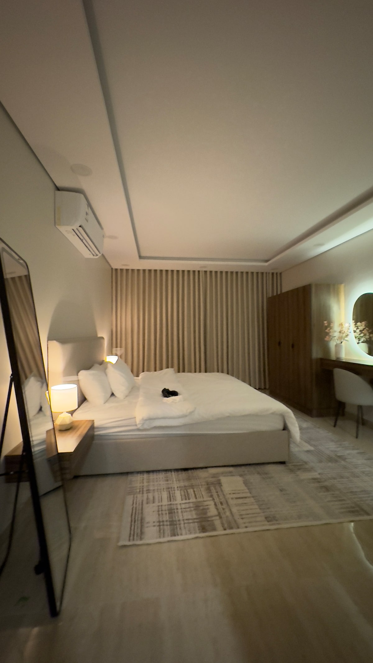 Luksusowy ✔️ apartament hotelowy charakteryzujący się jakością, elegancją i luksusem w najdrobniejszych szczegółach, od mebli po centralną klimatyzację. ✔️ Wyróżnia się bliskością dworca kolejowego, który znajduje się w odległości zaledwie 5 minut. (Na terenie dworca znajdują się autobusy zapewniające bezpośredni transport do Wielkiej Meczetki) Apartament ✔️ składa się z jednej komfortowej sypialni hotelowej oraz dużego, luksusowego salonu z dużym telewizorem. Apartament ✔️ znajduje się w jednej z najbardziej ekskluzywnych dzielnic Mekki, 10 minut od Wielkiej Meczet. W pobliżu apartamentu znajdują się liczne usługi i wyśmienite restauracje.