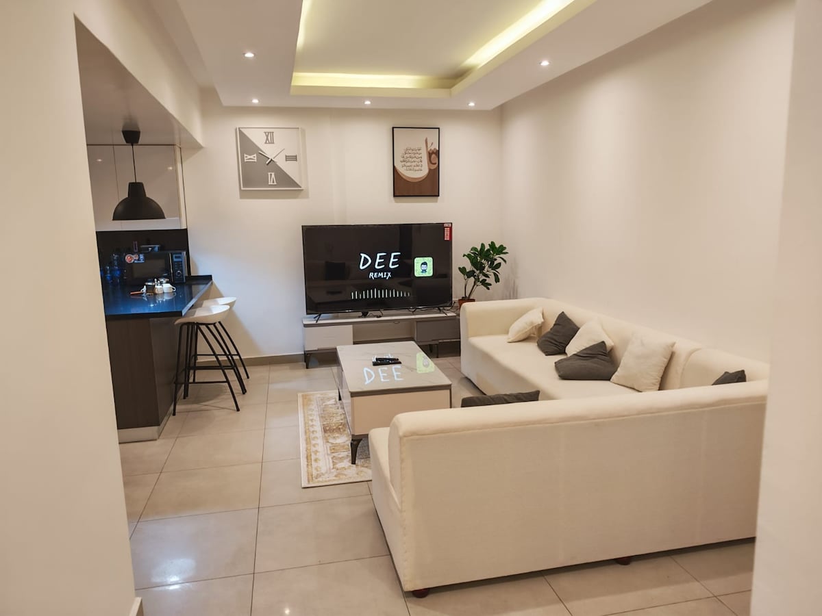 Nowe mieszkanie z 1 sypialnią, balkonem, salonem i 2 toaletami. Ładne meble. Wyposażone w szybkie Wi-Fi, łóżko i garderobę, sofę, 50-calowy telewizor Smart TV, telewizję satelitarną i bezpłatny dostęp do Netflixa, żelazko, suszarkę do włosów, odkurzacz, klimatyzację kanałową, sufit z punktowymi światłami LED. Możesz korzystać z bezpłatnego basenu, siłowni i placu zabaw dla dzieci oraz miejsca do grillowania. 5 minut jazdy od centrów handlowych, 15-20 minut od lotniska. 20 minut jazdy od plaży, 20 minut jazdy od starego rynku, obok widoku na wydmy.