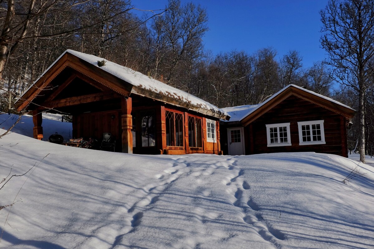 Przytulna chatka zbudowana w tradycyjnym stylu z obszaru «Hallingdal». Doskonałe warunki słoneczne, kominek na zewnątrz i wewnątrz, sauna, wspaniały widok na góry i ręcznie wykonany aneks z bali. Świetne miejsce na zajęcia zimowe i letnie: stoki przełajowe i wzgórze saneczkowe tuż za drzwiami, wyciągi narciarskie 10 minut drogi, trasy rowerowe i piesze, pobliskie gospodarstwa górskie, pływanie w rzekach, kajaki itp. Dostępne krzesełko do karmienia, przewijak i łóżeczko dla niemowląt/małych dzieci.
