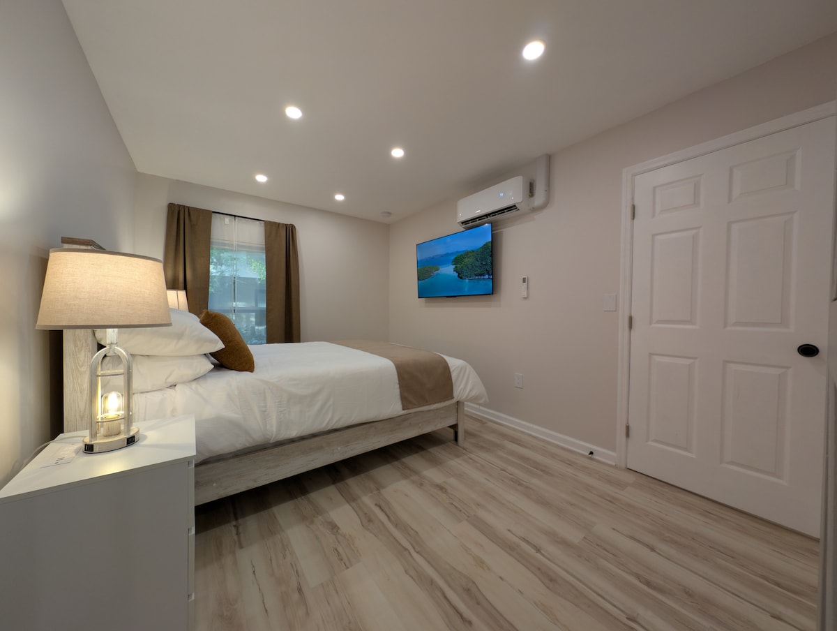 NOWO WYREMONTOWANE – Ciesz się pobytem w Gainesville w tym nowoczesnym studio z połowy wieku, 0,5 mili od UF i 2 mile od szpitali UF i HCA. W tym pięknie zaprojektowanym, wolnostojącym domu gościnnym nie pominięto żadnego szczegółu, jest tu mnóstwo naturalnego światła, ekskluzywne wykończenia i niezliczone udogodnienia – aneks kuchenny, mini lodówka/zamrażarka, telewizor Smart TV i wiele innych! Ta dogodnie położona, prywatna i cicha przestrzeń w sercu Gainesville jest idealna dla każdego, kto odwiedza tylko na jedną noc lub kilka tygodni.