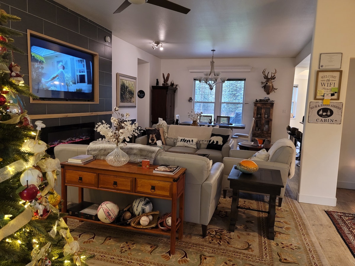 Dagan Circle to dobrze wyposażony, przestronny dom na dwóch akrach w pięknej, spokojnej, ekskluzywnej dzielnicy w North Pole, kilka minut od Eielson AFB i Fairbanks Ft Wainright. Nie musisz ścigać się z zorzą polarną, podziwiać widok z naszego nowego jacuzzi lub wyjść do przytulnego paleniska🔥, zapytaj o opcjonalny nowy domek Lux Cottage i dodatkową 5 sypialnię. 🚗 Wynajem samochodów ze zniżką i transfer na lotnisko. 2 piętra ogromnych otwartych koncepcji dla grup i rodzin. Gospodarze mieszkają poza ADU, aby zapewnić Ci prywatność.