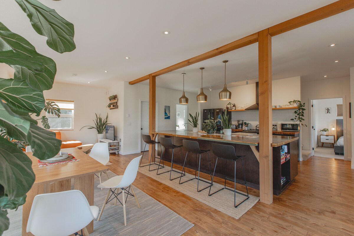 Two Beaches Boutique Suites to ekologiczne miejsce na pobyt w Ucluelet, oferujące minimalistyczne wnętrza w stylu skandynawskim. Zaprojektowany i zbudowany w 2018 roku, każdy jasny i wysoki apartament ogrodowy ma 180 stóp kwadratowych z łazienką, prywatnym wejściem i podzielonym tarasem. Położony między Little Beach, Terrace Beach, Wild Pacific Trail i 15 minut od Parku Narodowego, nasz obiekt jest idealnym miejscem dla tych, którzy szukają spokoju i przyrody. Ładowarka do pojazdów elektrycznych poziomu 2 do wyłącznego użytku gości