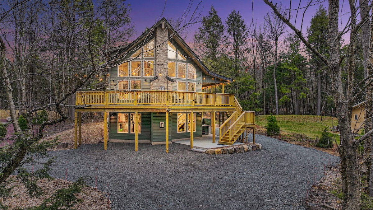 „Hugo Haus” oferuje dostęp do ośrodka wypoczynkowego z sezonowym basenem, jeziorem, plażą, placem zabaw, kortami tenisowymi i boiskami do koszykówki. ★ „Wyjątkowo czyste, dobrze zaopatrzone i w bardzo cichej i bezpiecznej społeczności.” ☞ Podwórko z tarasem i grillem Weber ☞ Loft z grami i automatem Ms Pac-Man ☞ W pełni wyposażona + wyposażona kuchnia Telewizory Smart TV☞ 65” + 40” z Netflix ☞ Parking na → podjeździe (5 samochodów) Głośnik ☞ Bluetooth Klipsch ☞ Wewnętrzny kominek gazowy ☞ 707 Mb/s 7 minut do → centrum Albrightsville (kawiarnie, restauracje, sklepy) 14 minut → Big Boulder Mountain