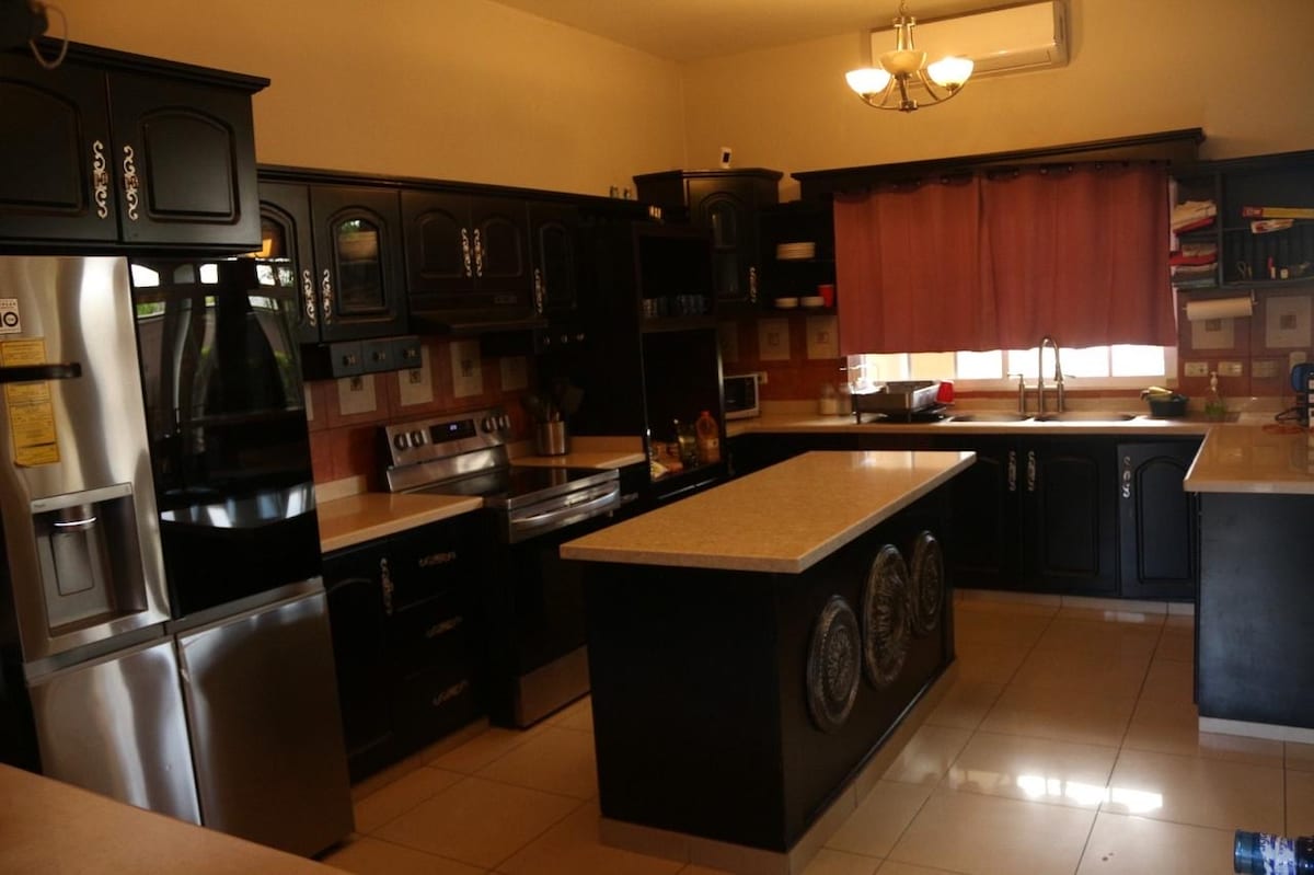 Przestronny, nowoczesny i wygodny dom, idealny na ciche spotkania z rodziną i przyjaciółmi, odpoczynek i długie pobyty. Ciesz się panoramicznymi widokami na miasto, przestronnymi przestrzeniami, dwoma wygodnymi salonami i zaopatrzona kuchnią. Każdy pokój ma prywatną łazienkę, garderobę, klimatyzację i telewizor, zapewniając prywatność i komfort. Na tarasie znajduje się telewizor, a drugi salon jest idealny do oglądania filmów z rodziną. Znajduje się w cichej dzielnicy mieszkalnej. 🔕 Zakaz imprez i głośnej muzyki.