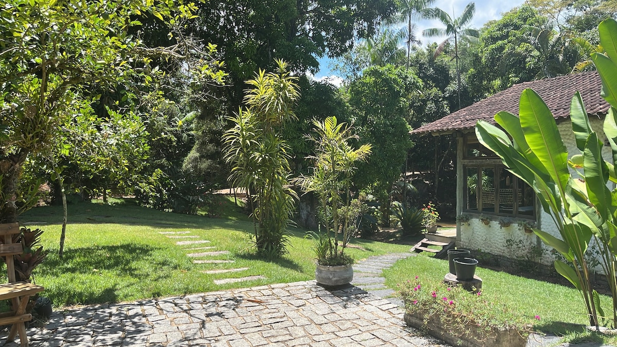 Domek ma 35 m² i jest zbudowany na działce o powierzchni 71 tys. m², z czego większość to las atlantycki. Posiada sypialnię, łazienkę, kuchnię, salon i balkon. Rozkładana sofa typu queen size i podwójny materac piankowy dla 4 osób. Posiada zalesiony ogród i jezioro z rybami, w którym można łowić. Środowisko zapewnia doskonałą okazję do kontaktu z naturą. Położony w pobliżu słynnych browarów w górach Espírito Santo. Zameldowanie od 17:00 do 21:00 Wymeldowanie do godziny 14:00 Mamy internet przez światłowód