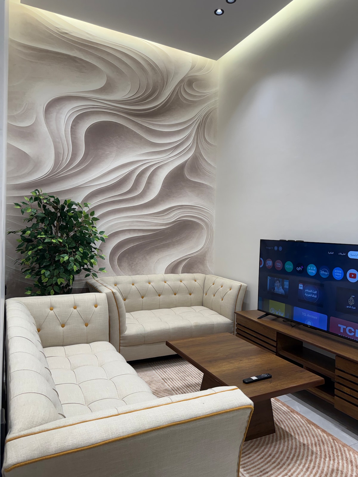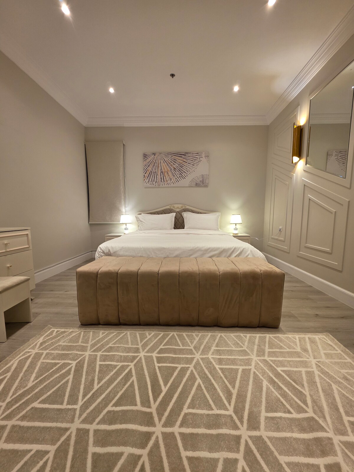 Zrelaksuj się w tym cichym i eleganckim miejscu. Luksusowy apartament z pełnym panoramicznym widokiem na ogród z krzewami jagodowymi, różami, winogronami, inteligentną usługą dostępu, a także dużym nowoczesnym ekranem z technologią UHD 4K z subskrypcją usługi iptv, wszystkie kanały świata, a także kanały sportowe Bein, Saudi Sports, showtime, Netflix i wszystkie filmy i seriale, (( i Mistrzostwa Świata😍)) W pobliżu apartamentu znajduje się meczet. W pobliżu znajduje się park Al-Radf, restauracje, targowiska i luksusowe kawiarnie. Przewodnik turystyczny zapewni gościom wszystkie miejsca, które warto odwiedzić.