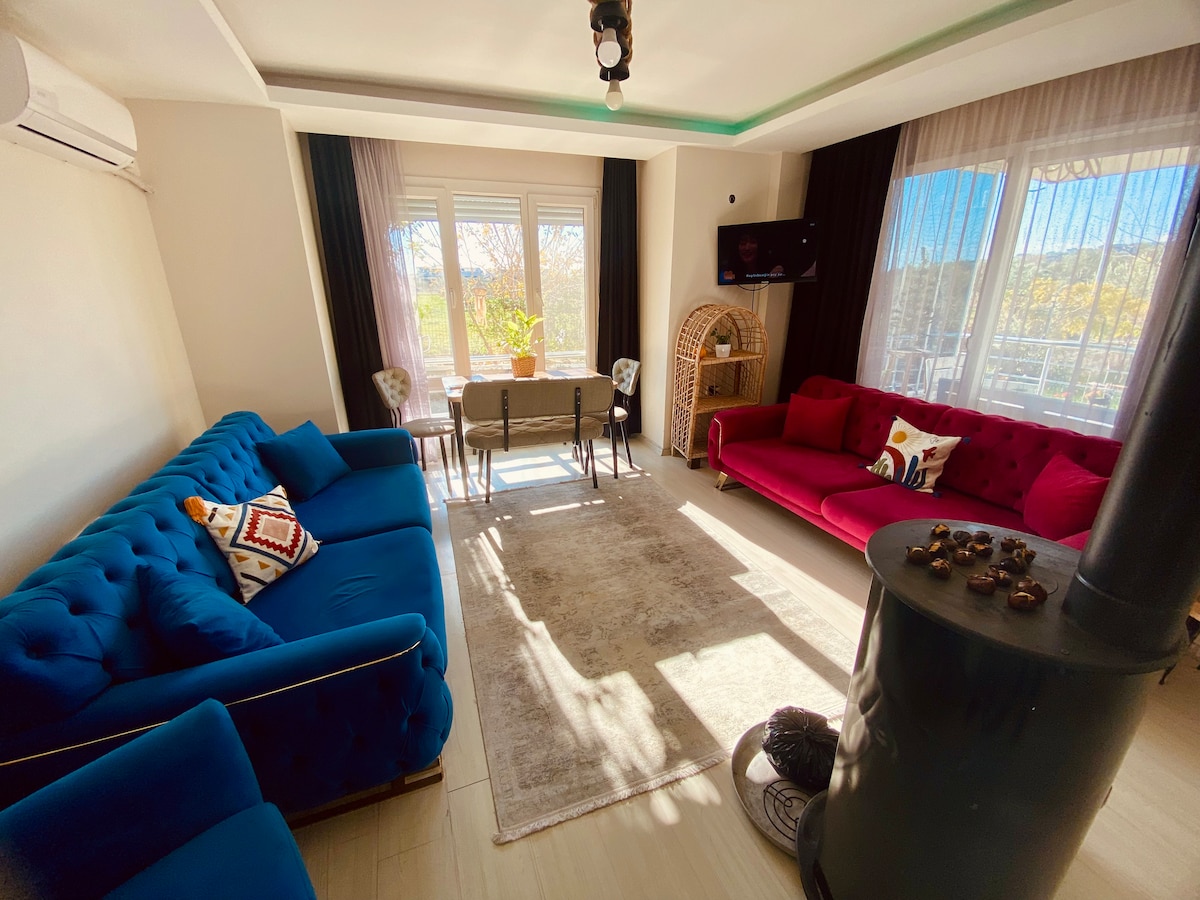 Aileniz ile birlikte huzurlu bir tatil yapabileceğiniz, denize ve marketlere sadece 5 dakikalık mesafede olup merkeze ise sadece 15 dakika.Otopark problemi yaşamayacağınız , kendinize ait barbekü ve verandasıyla doğa ile iç içe olup aileniz ve sevdikleriniz ile rahat ve huzurlu bir tatil imkanı sunar. Daire Özellikleri: Tv Çamaşır makinesi Bulaşık makinesi Ütü Saç kurutma makinesi Sıcak su Klima 1 Adet Çift Kişilik yatak 2 Adet Çekyat Koltuk Mutfak'ta ihtiyacınız olabilecek demirbaş eşyalar