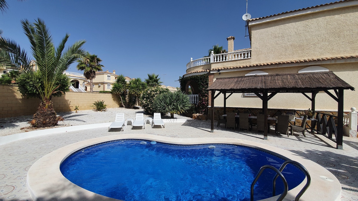 Twoja nowa, luksusowa willa o powierzchni 250 m² z 600-metrowym ogrodem, prywatnym basenem i sprzętem do grillowania, położona w niewielkiej i ekskluzywnej okolicy, bardzo blisko plaży. Gustowne i ekskluzywne wyposażenie wnętrza i umeblowanie zachęca do relaksu i cieszenia się każdą chwilą, całkowicie niezakłóconą. W odległości 10 min jazdy znajdują się dwa pola golfowe. Chociaż są dwie linie autobusowe lub łatwo jest złapać taksówkę, aby dojechać do domu, najlepiej mieć samochód na plażę lub do Alicante.