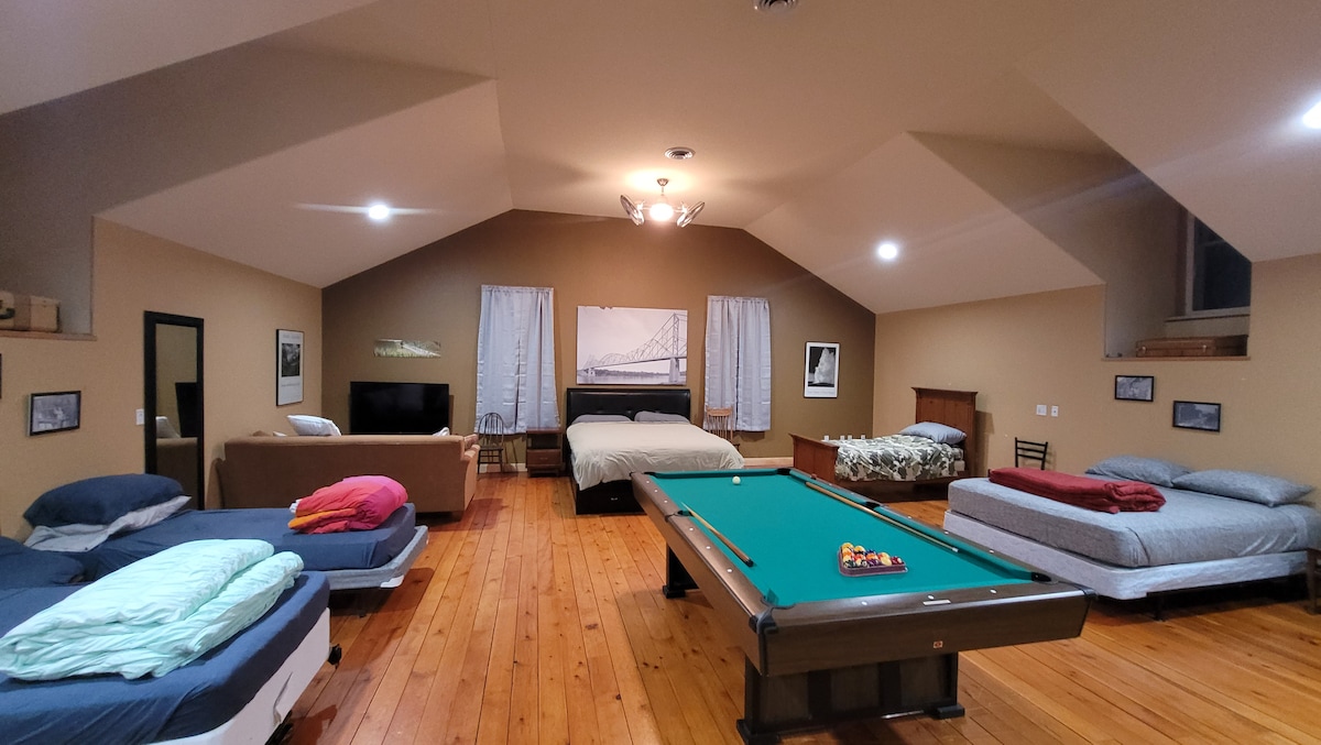 Your whole group will enjoy easy access to everything Lansing has to offer from this centrally located loft. 4 bars, multiple restaurants, grocery store, and Kwik Trip, all within 2 blocks. View the Mississippi from the deck while grilling, or walk down to the water. Explore the Driftless Area, watch the leaves change, plan fishing or hunting getaways, get-togethers with relatives, bachelorette parties, and more! Or, just get away from it all for a weekend in an 1800ft loft!