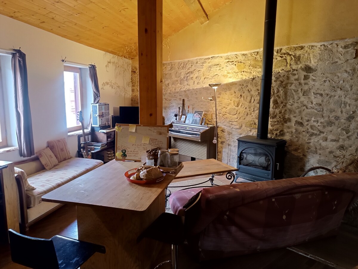 Położona poza niewielką, cichą wioską (wysokość 800 metrów) na końcu krętej drogi stodoła z widokiem na góry, otoczona jest polami i lasami - bez widoczności! Całkowicie odnowiona z ekologicznych materiałów, gîte zachowuje cały urok i autentyczność pirenejskiego mieszkania, ale z całą wygodą celowego gite. Stodoła jest przeznaczona dla wszystkich – par, solówek, rodzin z dziećmi i spacerowiczów ze swoimi czworonożnymi przyjaciółmi.