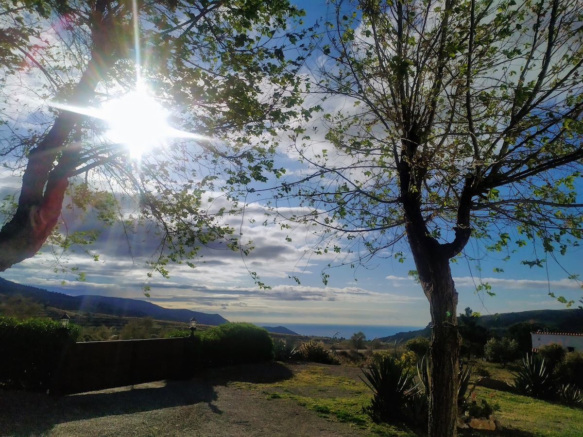 Cosy apartment in 300 year old orange grove Farmhouse, right on the edge of the Sierra Nevada. The farm still has an orange grove and grows fresh food all year around. The farmhouse is ideally located near an authentic Spanish village in the Alpujarras mountains, 28 km from Almeria (beaches) and 25 km from the Tabernas desert. The spacious apartment is fully self contained with a king bed, sofa bed, bathroom, kitchenette and terrace. A Large Pool,Table-Tennis and Petanca are on the property.