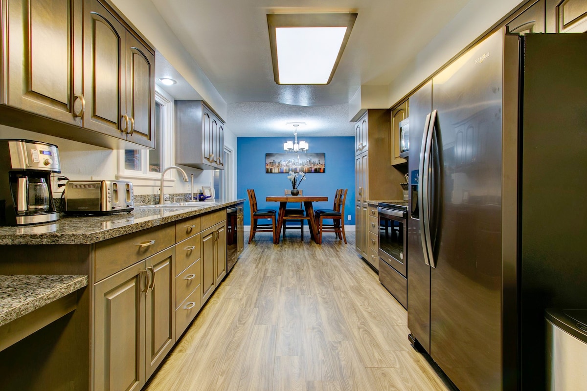 Featured in The Destination Channel’s TV show “Staycation- Sports Edition” in the fall of 2025 and found on YouTube. Contemporary-style music-themed home. Jam out with instruments, classic albums and record player by the pool table. Stunning gourmet kitchen. Big lawn and deck with teak dining table and bbq. Hot tub plus gas and real fire pits. Garage is packed! Ping pong table, pinball, foosball, Pop-a-Shot basketball, Treadmill, Peloton bike, dumbbells, and four mountain bikes+helmets.