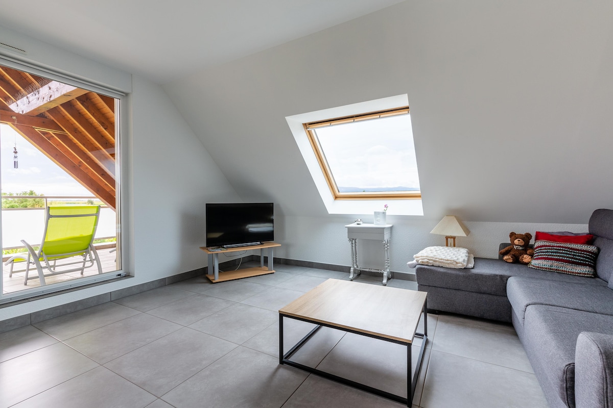 Piękny, jasny i wygodny apartament na dwóch poziomach na najwyższym i trzecim piętrze typowego alzackiego domu! To ciche miejsce oferuje prawdziwy odpoczynek w historycznym sercu naszego pięknego miasta winiarskiego. Odkryte belki, urok i komfort, a do tego piękne widoki na dachy wałów obronnych, bocianie gniazda, a w oddali winnicę i zamki. Odnowiony w tradycyjnym domu. Kolejna uwaga: Uwaga dom alzacki; strome schody.