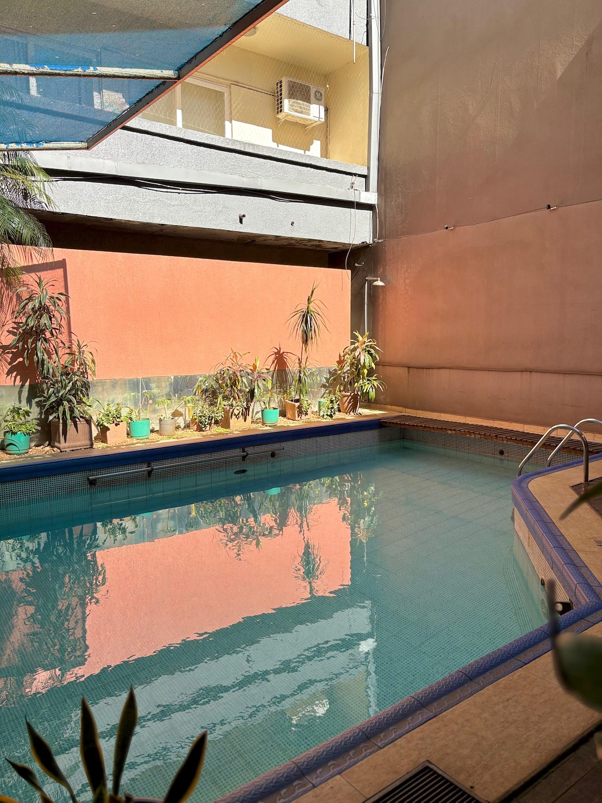 Departamento de Lujo. 2 Habitaciones. 2 Baños. Ubicación estratégica a minutos del centro de la ciudad, a metros de parada de taxi y parada de bus, a una cuadra de la Ruta internacional PY02. Está a pasos del Shopping Arena y Plaza Noblesse, Shopping Lago, la zona cuenta con peluquería, lugares gastronómicos, gimnasio, bancos y casas de cambios. El edificio cuenta con una hermosa vista panorámica a la ciudad y seguridad con monitoreo las 24 horas.
