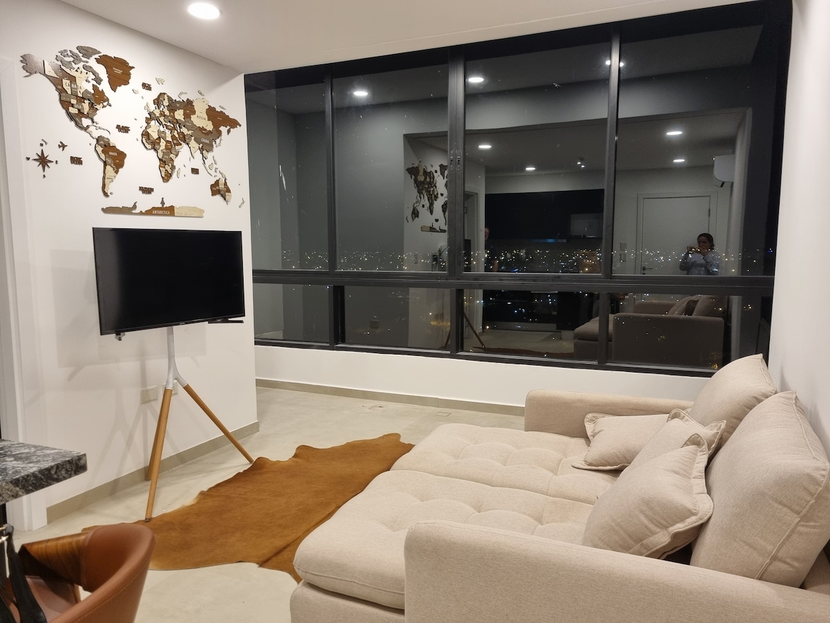 Ciesz się wyjątkowym pobytem w tym eleganckim apartamencie w Ciudad del Este. Jest tu sypialnia z podwójnym łóżkiem i duża rozkładana sofa, idealna dla maksymalnie 4 osób. Dzięki nowoczesnemu wystrojowi i niestandardowym meblom oferuje komfort i styl, a do tego grill i duży balkon. Budynek jest nowy i obejmuje udogodnienia takie jak: basen bez krawędzi, przestrzeń coworkingowa, siłownia, salon dla dzieci, pralnia, hol, salony i całodobowa ochrona. Położony w strategicznej okolicy, idealny do pracy lub odpoczynku.
