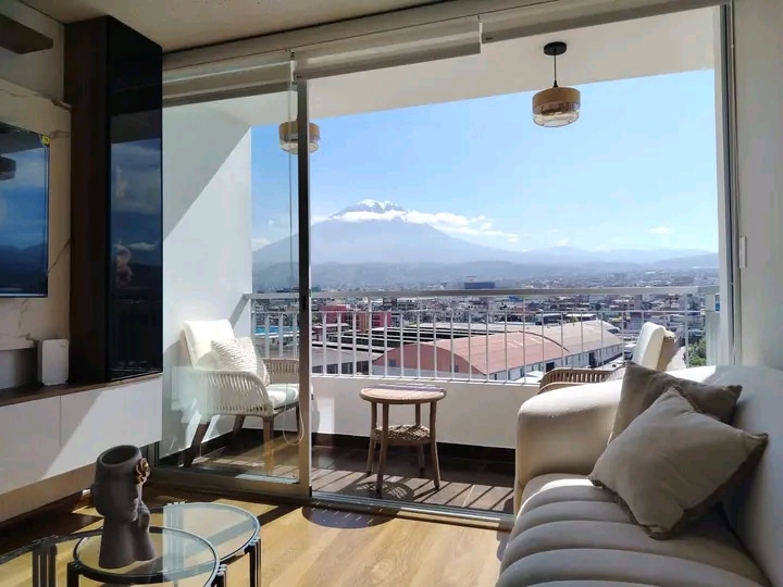 Modernidad y confort con vista al Misti🌋. Ideal para desconectar de la rutina o trabajo remoto. A 10 min del aeropuerto y zonas turísticas📍. Equipado con wifi, Netflix, cocina completa y agua caliente. Dormitorio con cortinas blackout para un descanso total. Incluye cochera interna🏎️ y acceso a Oxxo en el condominio🛒. Espacio desinfectado y seguro. 🚫 No mascotas / No fumar / No fiestas. Tu refugio funcional y privado en la ciudad.