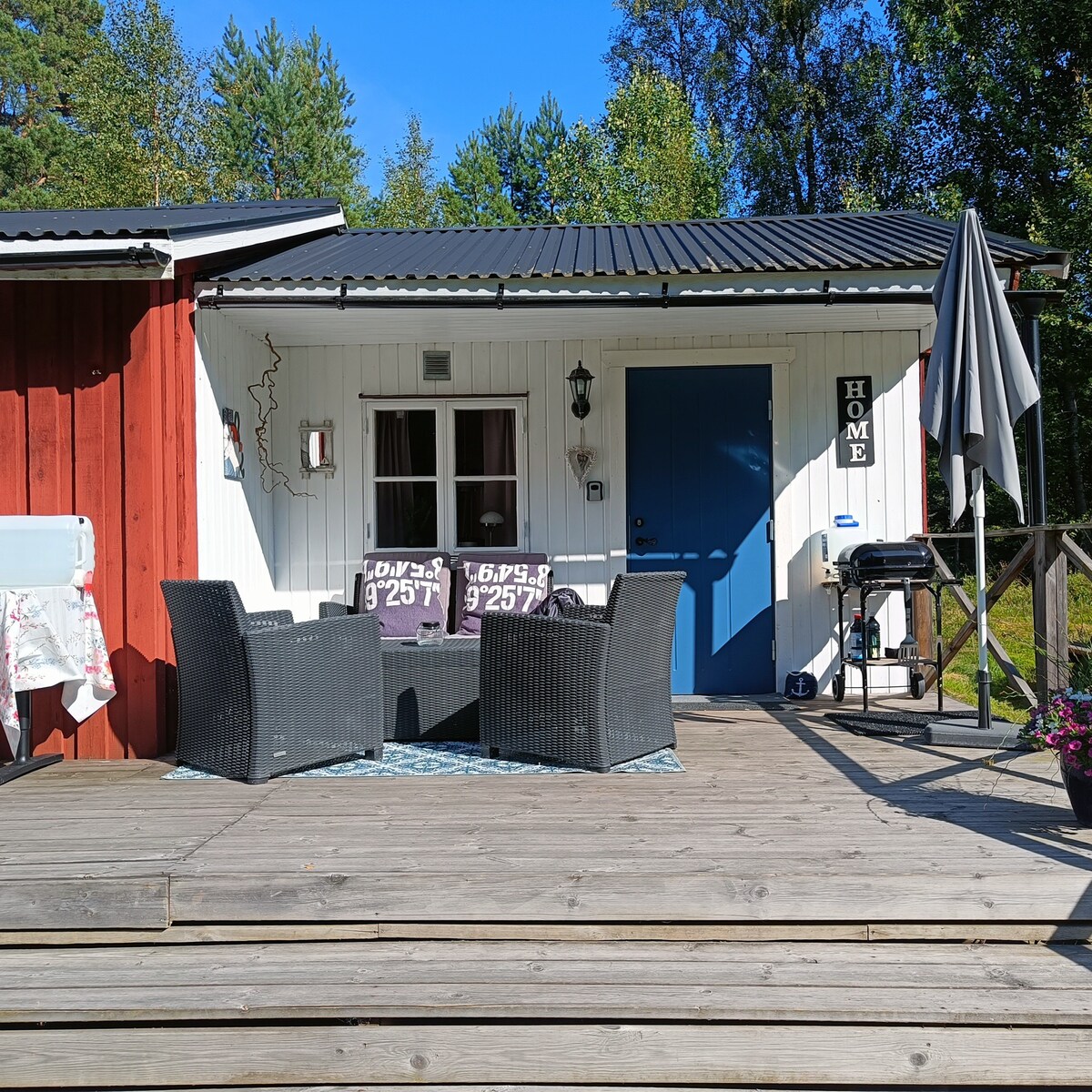 Zrelaksuj się w tym wyjątkowym i spokojnym miejscu. Domek znajduje się tuż przy wodzie. Ciesz się kąpielami ze skał, wieczorami przy grillu, spacerami po lesie, zbieraniem jagód, grzybów lub spróbuj szczęścia w łowieniu ryb w jeziorze Vänern. Domek znajduje się 15-20 minut od centrum Åmål i Säffle.